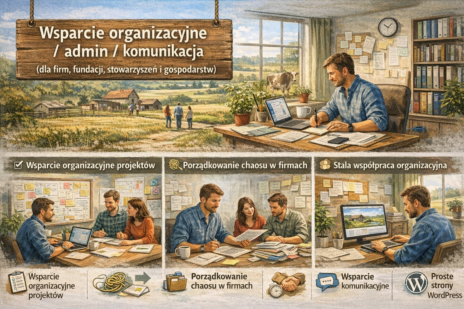 Pracuję zdalnie z małymi organizacjami, fundacjami, gospodarstwami i projektami, które działają z zaangażowaniem, ale gubią się w codziennym chaosie: komunikacyjnym, organizacyjnym i decyzyjnym.